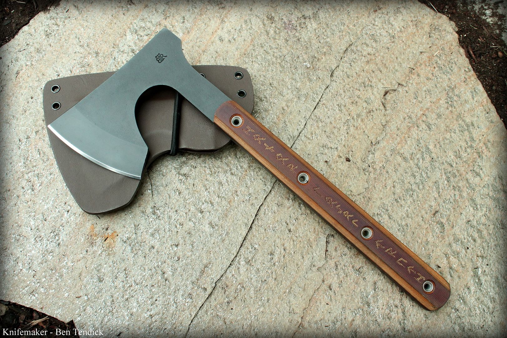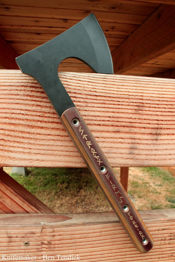 Handle - Natural Westinghouse canvas micarta Hand carved viking runes read "Honor loyal truth - Strong firey warrior"