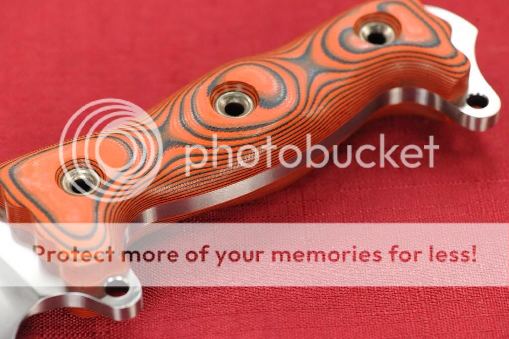 I'm posting a pic of the hand shaped unique black/tan g10 and also a pic of orange/black hand shaped g10 for reference.