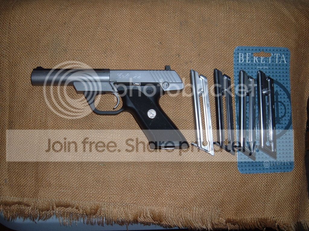 Colt 22LR Cadet. Stainless steel and polymer. Comes as you see it with two colt mags(1 stainless, 1 blue) and two Berretta mags that work with the gun(1 unopened). I got this one used but have run 250 rounds through it. $275***sold***