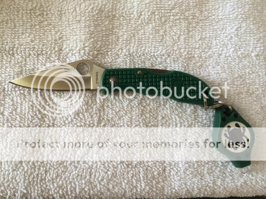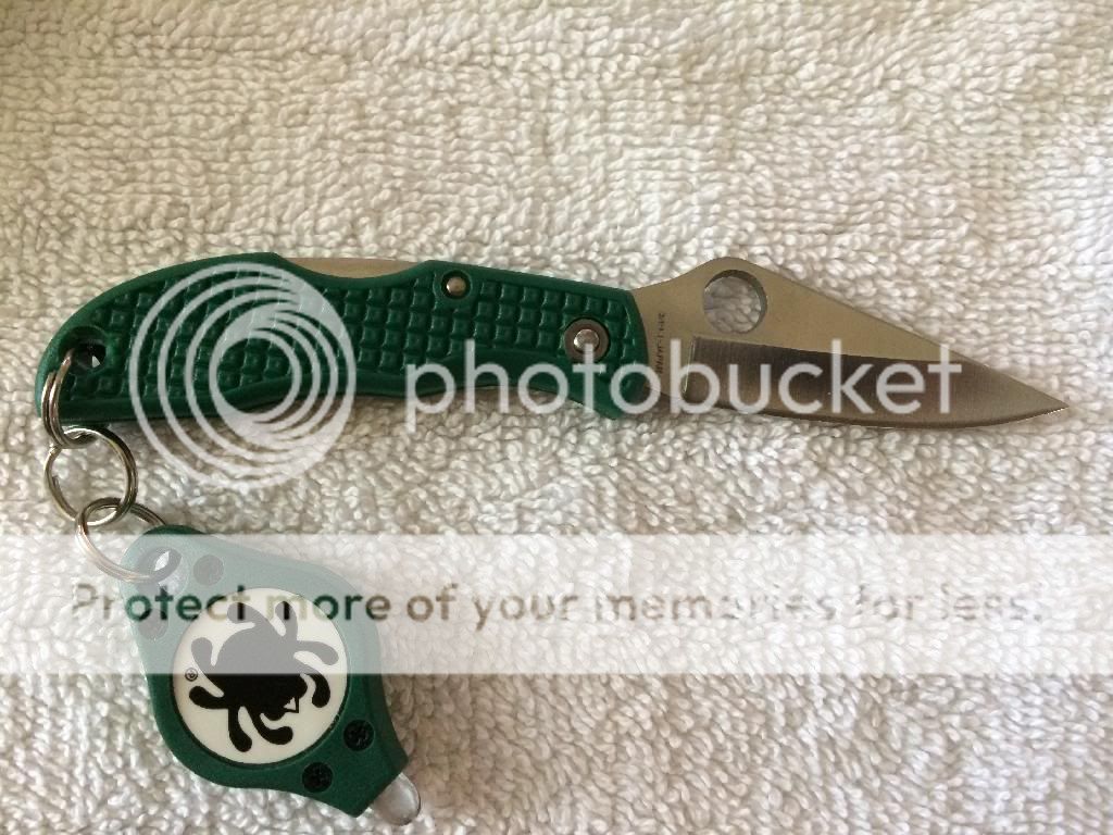First up is one of the rarest Spyderco Ladybugs out there. It is a Ladybug Photon in green. It is Collector's Club numbered #060V. I don't think I've ever seen another one of these for sale on here or online. This is plain edge, absolutely mint, I still have the box, baggie, and the photon light functions flawlessly. I have never used or carried this knife. $Sold