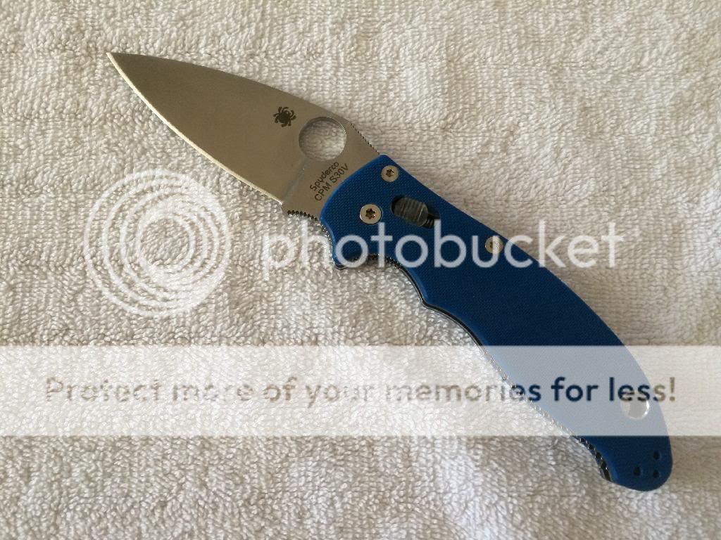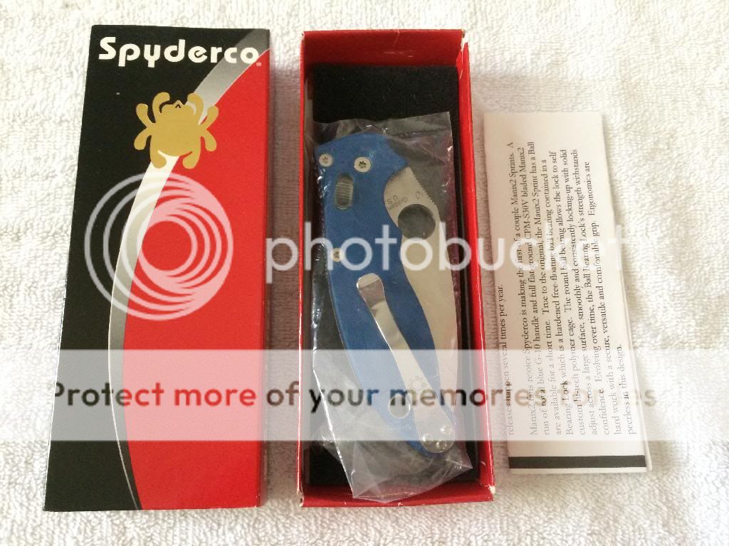 Spyderco Manix 2 S30V Blue G-10 Sprint- Another awesome sprint, equally hard to find. I am the second owner of this knife. The original owner sent it away to Spyderco for Spa service and carried it a lot more than I did. The blade is in excellent shape. The G-10 is nice and bright but has a couple signs of wear from the previous owner. Includes box, baggie, and paperwork. $Sold