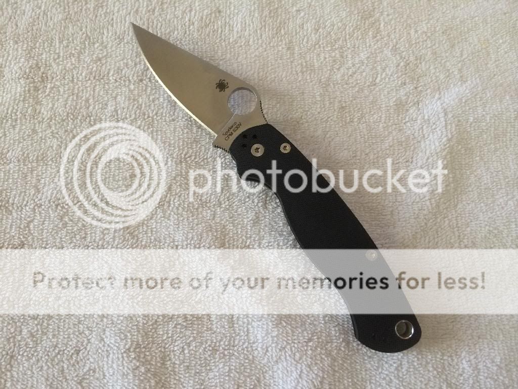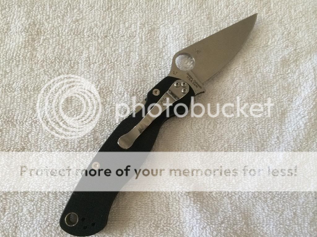 I have a Spyderco Paramilitary 2. Black G-10/Satin plain edge. I am the second owner of this knife. I have sent it to Spyderco a year or two ago for Spa service. Locks up great, nice and smooth, and the blade is in excellent shape. The G-10 shows no wear. Would be a great user! Includes everything except the plastic baggie. $120