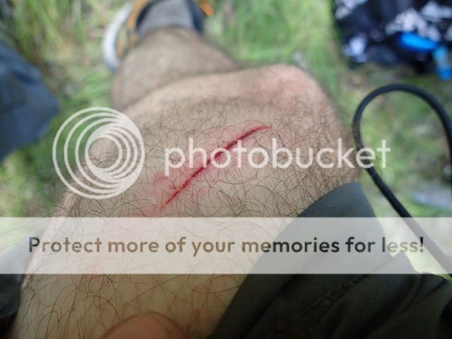 4 inch-long bloody gash from stepping into the swamp water on a sharp stick.