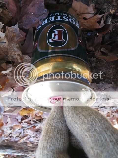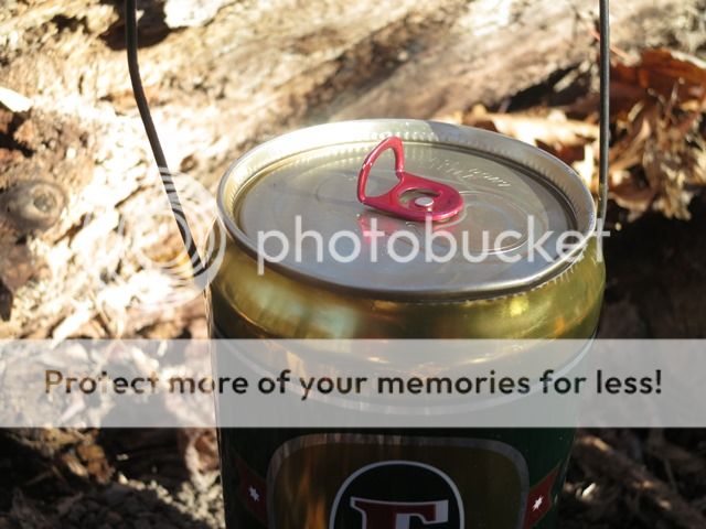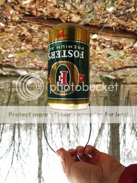 Fosters beer cans are a heavier grade of aluminum suitable for using as a cooking apparatus and camp cup. By removing the top of the can with a safety can opener I was able to use the top as a lid. I added a bale to pick it up and hang over an open fire.
