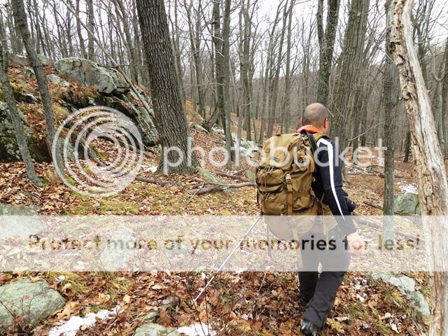 The weather was crisp, the creeks gurgled their choked sound, and the leaves blanketed the forest floor as far as we could see. The purpose of this day hike was to look for some winter camps with wood, water and seclusion. We also had some toys to play with.