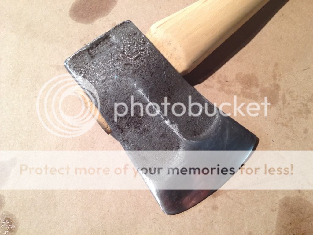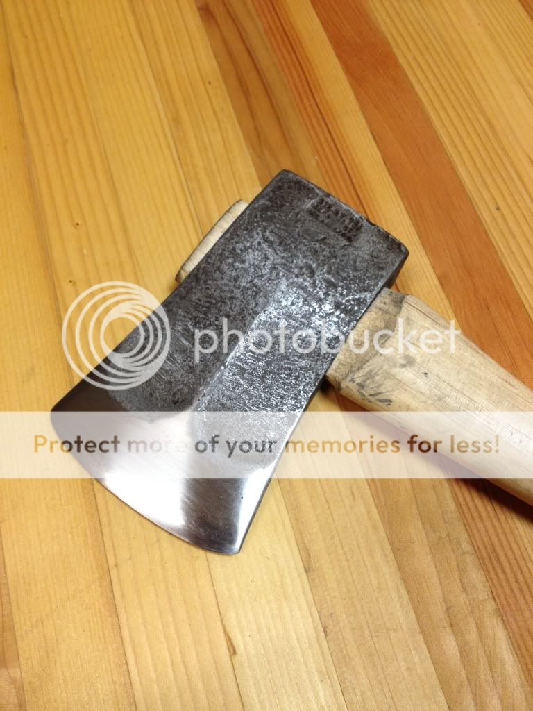Finally got around to tackling a few heads in my 'head box.' Here's a nice little hatchet with beautiful bevels. I sharpened and polished the bit to accentuate them. Unfortunately, the stamp is unreadable. My guess is it dates from the early 1900s. Anyone else recognize these bevels? Manhattan Axe Co. made an axe called the Ideal Ridge with similar bevels, but that's all I've found that's close.
