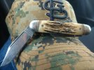 Here's a Buck cap with a Sarge 440C BSA Barlow. I tell people who ask that I got the hat because it displays my birth year.