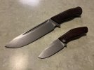 Both knives are D3V, have antique micarta scales, and include the original sheaths as pictured.