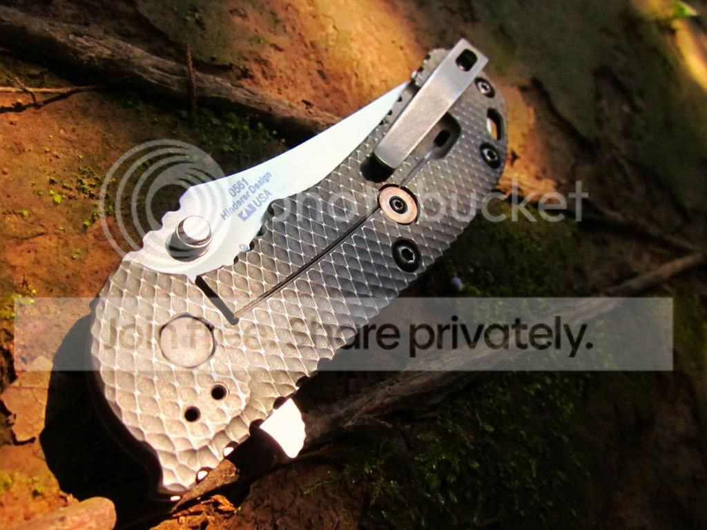 The knife deploys very smooth which is to be expected from the bearings. There's no side to side play but there is up/down play. I think if you carbidize the lockbar again it would alleviate the play but I don't have a carbidizer. There are also some light scratches on the left side of the blade right below the spine. That is the only real wear on the knife as far as I can tell.