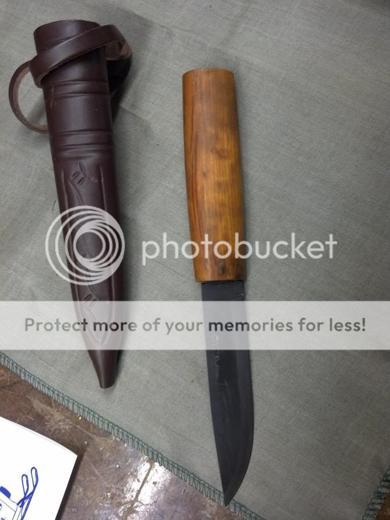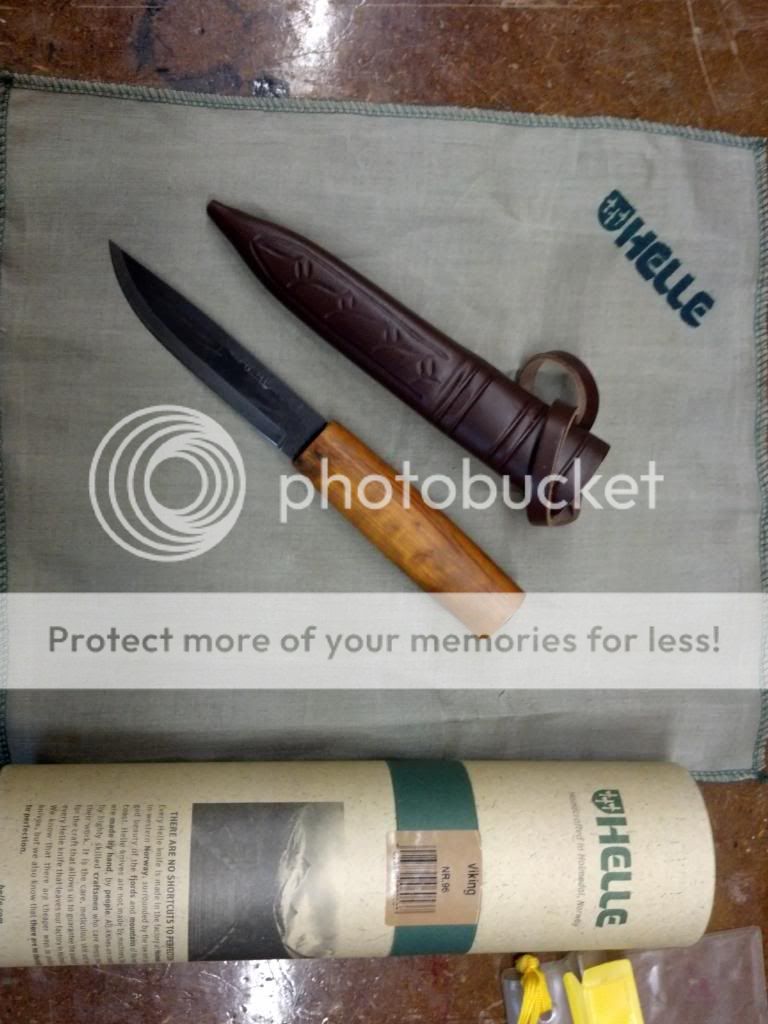 This is a Helle Viking knife. Ive only handled and looked at the knife never used it. It does still have the Heat treat on the top 2/3 of the blade where the " Helle" stamp is. Knife measures Just shy of 8 3/4 inches with approx a 4 1/2 inch blade. comes with box, sheath and Helle cloth. $ 80 shipped usa.