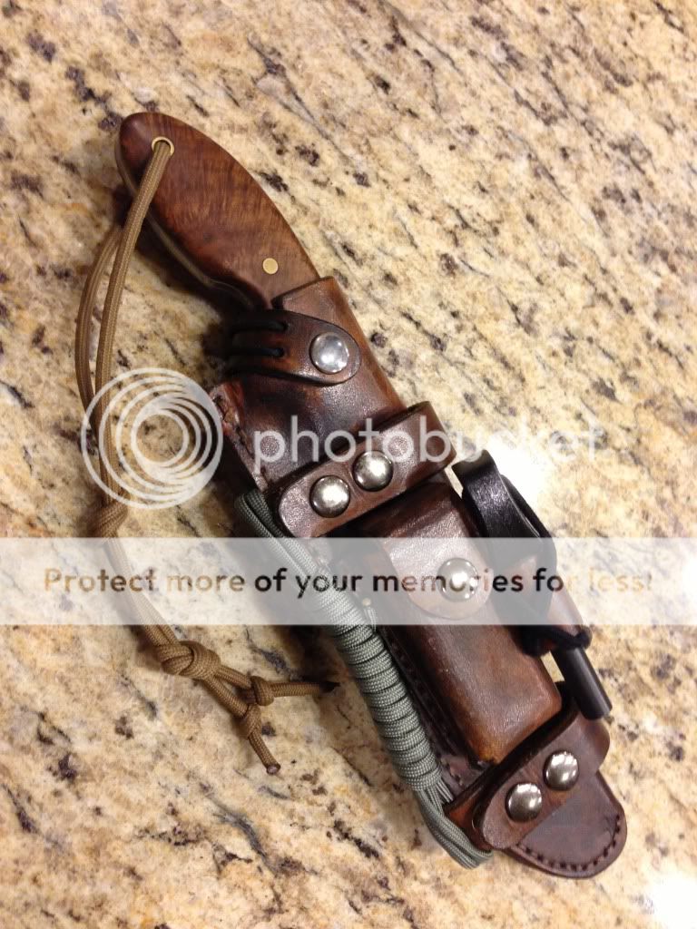 Two question for you guys. Is it enough to just back stitch to hold the stitches together at the end? I get paranoid and tie a knot at the end, then put a dab of super glue on it. I think it might be overkill. Secondly, what do you guys do about buttons rubbing on the knife blade or handle? I've been putting a tiny piece of gorilla tape over the back of snap buttons. This has worked to stop un-necessary scratching from the button, but I'm thinking their might be a better way. Just wanted to get this forum's thoughts on this.