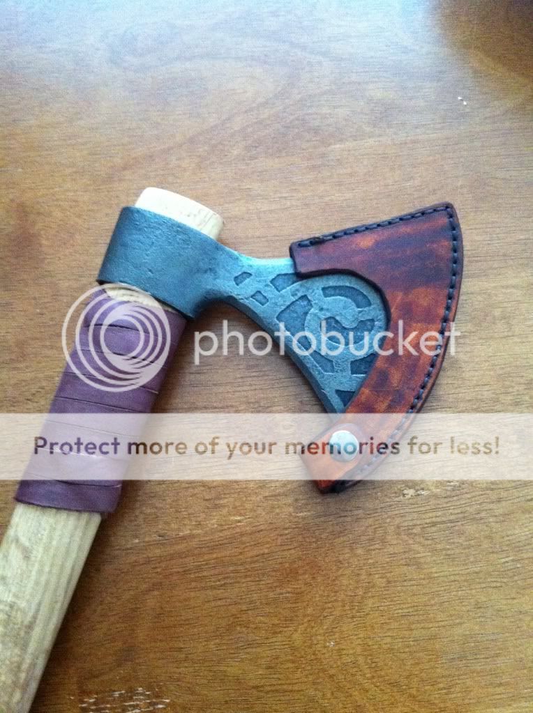 Here are the 4 sheaths I've made so far in the order I've made them. I learned to etched the cold steel norse hawk by reading the blade forums as well. Once again thanks to all on this forum for the info you guys bring. It's a wealth of knowledge here. The last sheath with the vine work I just finished last week. I'm trying to practice carving on pieces of leather I have around. I also bought a few stamps.