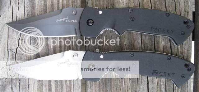 Hey guys. I'm new to the forum, not knives per se. But I am decidedly from the "old school" when it comes to knives. I'm just about 6 months into the "new school" of knives and catching up, discovering the BK2, the Sebenzas, the super steels, micarta, and Spydercos and am only now starting to warm to the looks of any Spyderco. I know, blasphemy to some probably. I want a Para 2, or a Manix 2 eventually. I have several clone knives and have spent a lot of time cramming, researching, studying into the wee hours. I've watched a hundred or so knife reviews and bought a couple dozen knives over the past 3-4 months, mostly on the budget end of things. But first things first. I've been studying the modding aspects of knives, and have a question about one in particular; the CRKT Crawford Kasper. I got the satin finish blade this time.