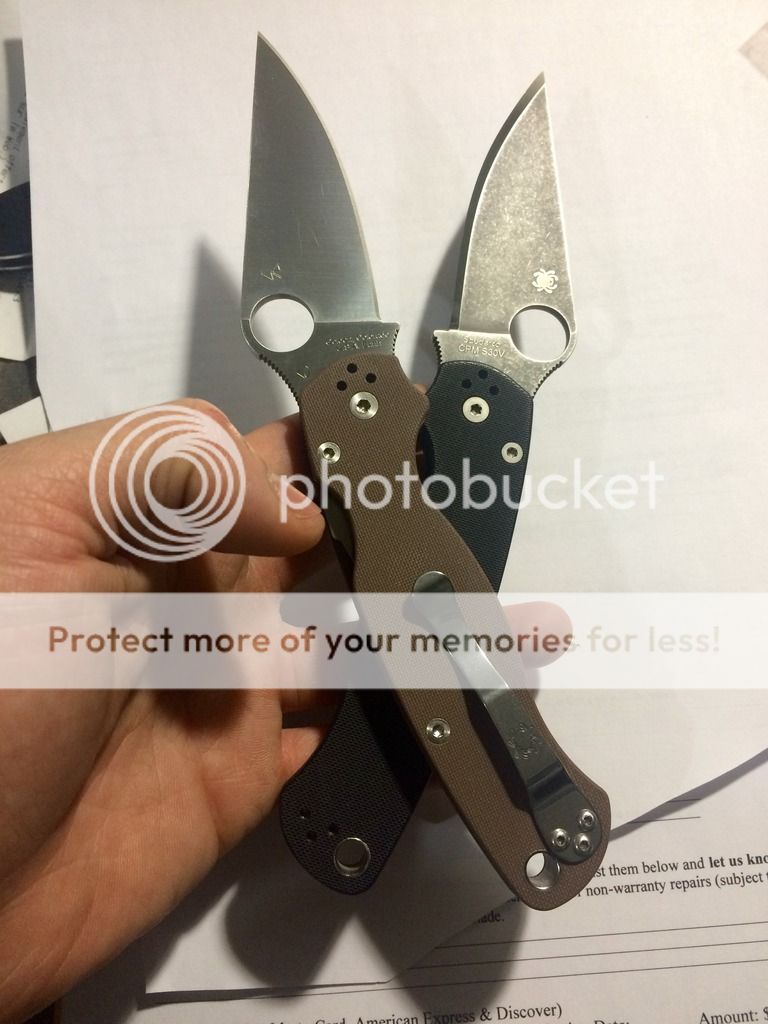 Ok, got a coyote S35VN PM2 and my good old faithful Black G10 S30V that I had Josh etched and stone washed with polish edge, I also did the clip the same. looks good on the bleached black G10, it has that old worn out look.