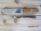 F. Full length but relatively narrow handle, more resembling a scalpel handle