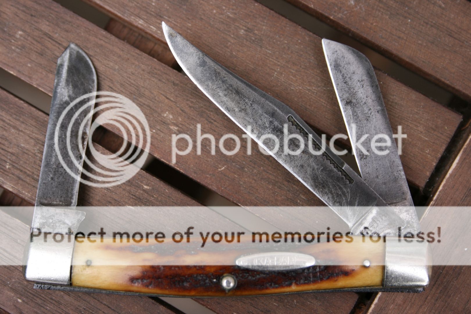 Here are two pre-WW2 Union Cut KA-BAR knives showing the earlier and later shields. The lockback swing guard has Union Cut on the reverse, and the moose has KA-BAR on both blades.