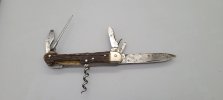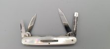 or one very similar. Did we trade for a switch? I was into Schrades at the time. I don't recall. Jerry Skelton bought my most of collection (god rest his soul) one year there. That's when I turned my focus to Henckels. The one next to the folding guard with the threaded bolsters looks early. What do you think? Pre 1890?