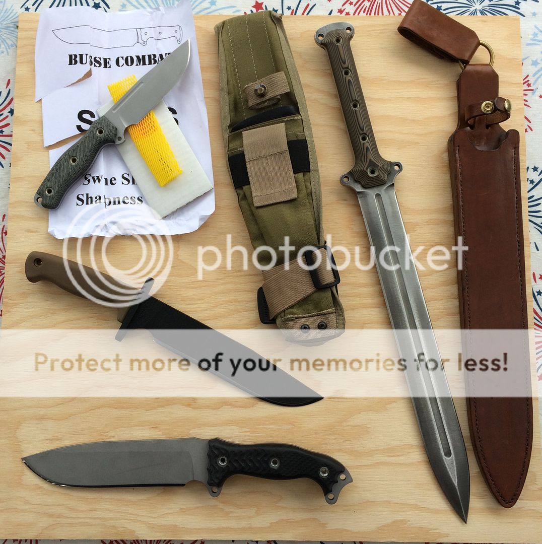 Busse Combat HHFSH Blk G10 Magnum handles stripped bead blasted and sharpened by Norcalblacktail . The scales are slightly off flush with the tang and the reason for the lower price. Comes with a heavy duty leather blade cover $675
