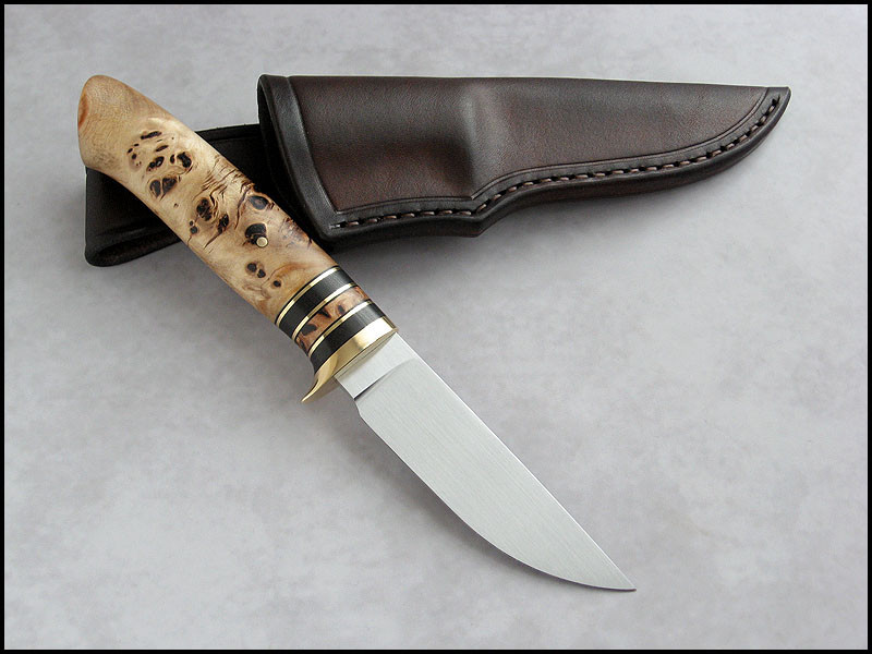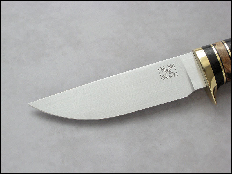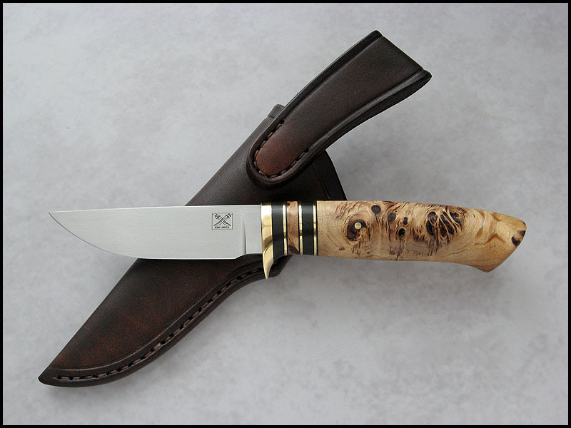 Bona The Art of Harmony Feedback: +31 / =0 / -0 Joined Apr 27, 2006 Messages 1,158 Mar 29, 2017 #1 Hello. My new Hidden Hunter for sale. steel D2 / 3.4 mm [0.134"] length 221 mm [8.701"] blade 100 mm [3.937"] handle brass, black fiber, Ironwood, stabilized Elm burl sheath leather Price - 295 USD plus 15 USD for International Priority Mail. SOLD Last edited: May 4, 2017