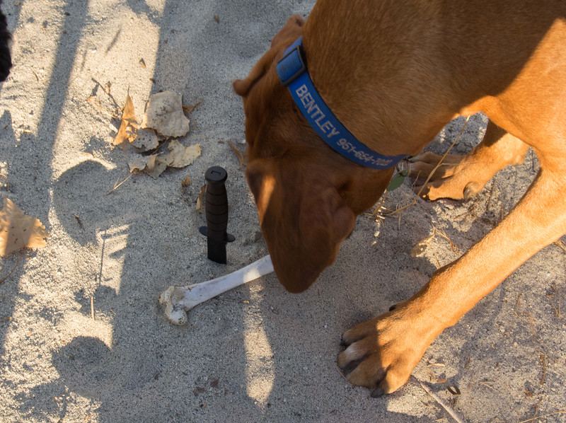 I was urged to do this over on the Becker forum: take a few photos of the Becker knife I was hiking with; so since I hike with a 1250 this morning I'll post a couple here -- don't know if you Ka-Bar people cotton to that sort of thing, but: