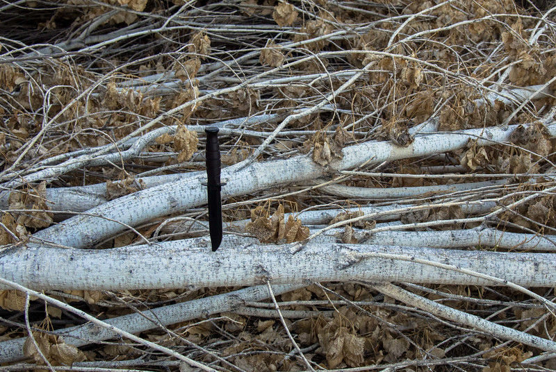 When I started out going over my hiking gear and got around to knives, the first ones that seemed ideal were the 1250 and variations thereof. Of course once I got to buying knives I couldn't find it in me to quit and some that I bought recently probably won't see too many hikes, but I took my little 1250 on a hike this morning. We got to the (dry) San Jacinto River at about dawn, but since the river is in the lee of the mountains the sun doesn't get up above it, where we hike) until about an hour and a half later.