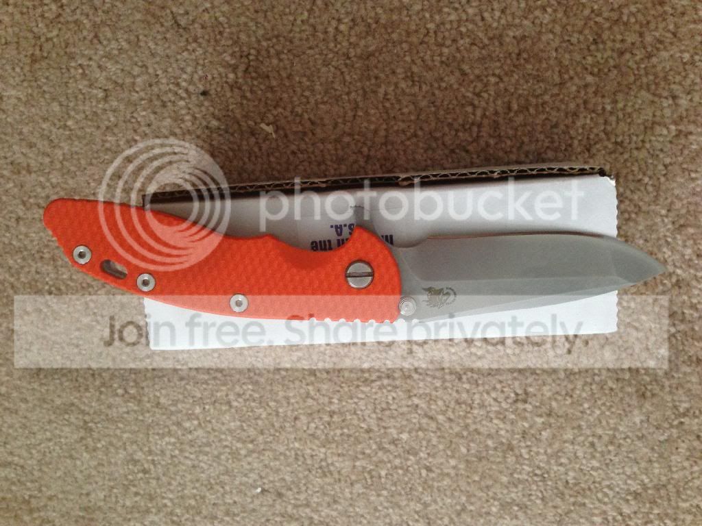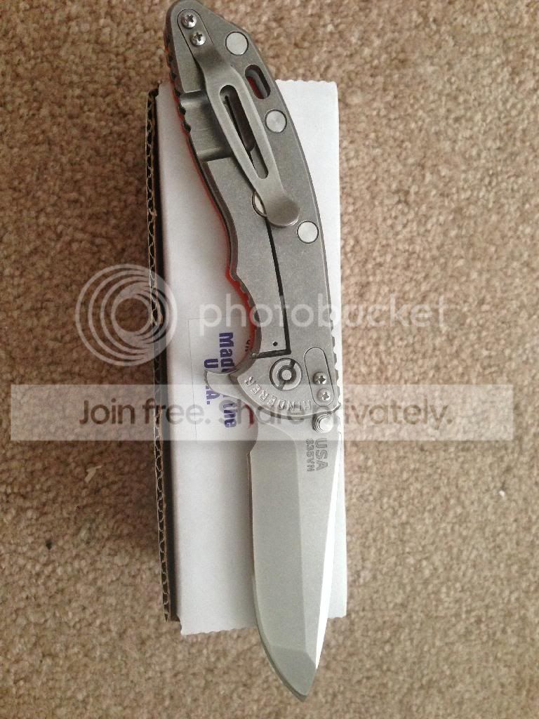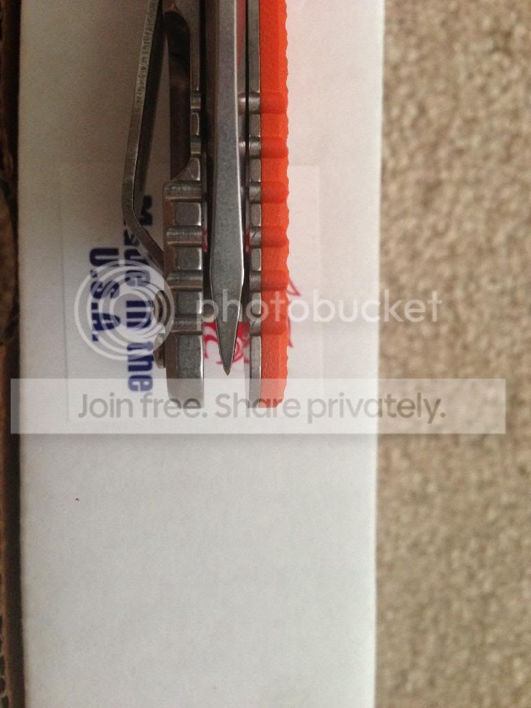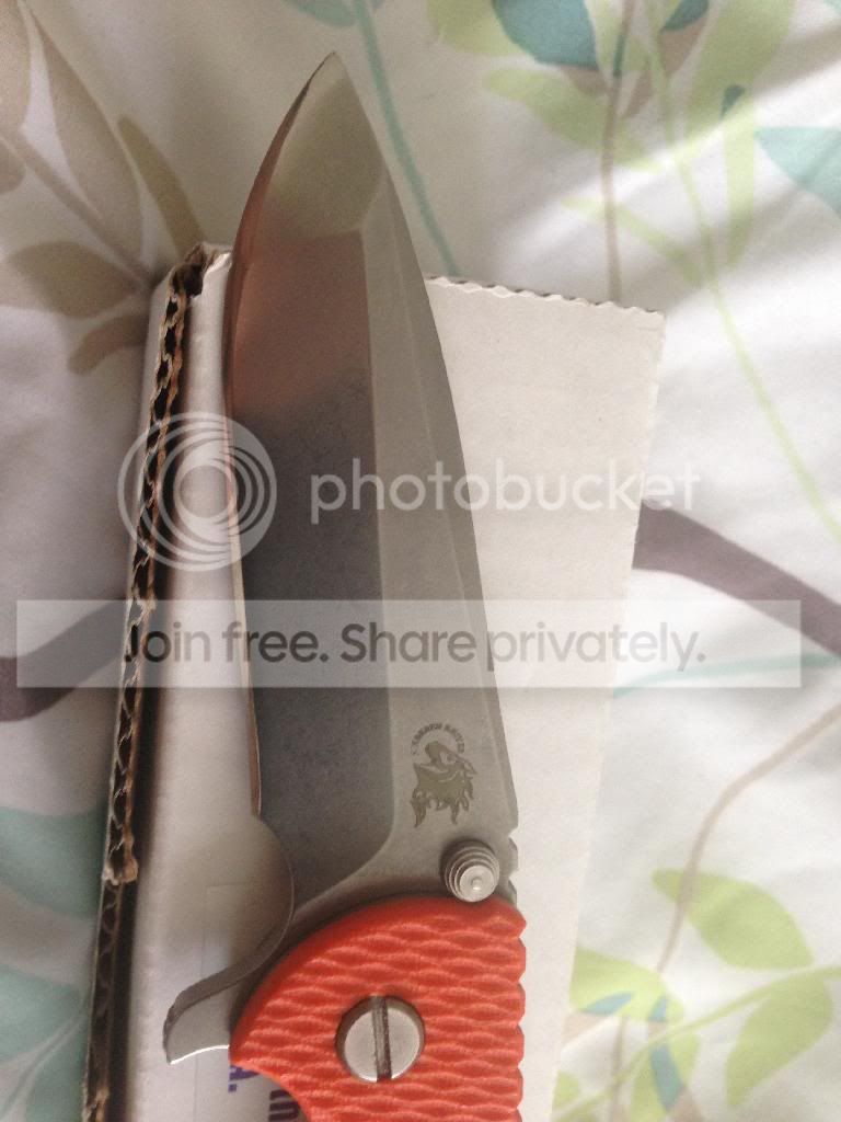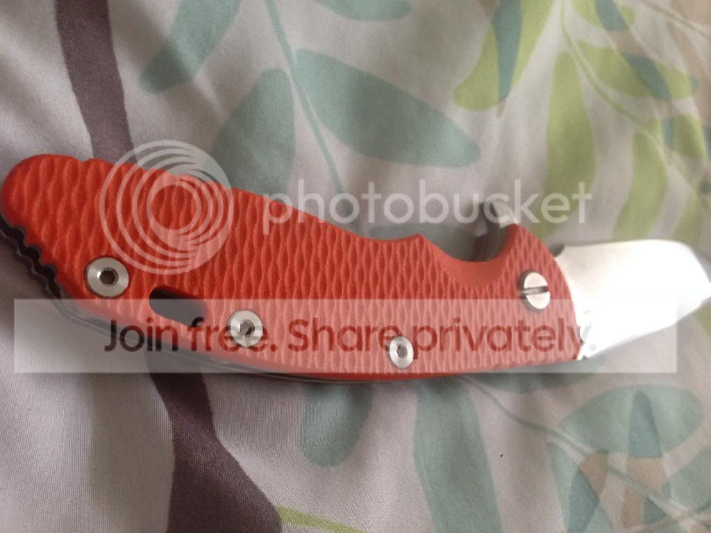 This has been my edc for the past 4-6 weeks, and I'm the second owner. Overall condition is great. It is the 3.5" spanto grind flipper in s35vn, with stone washed finish and orange scale. It has been sharpened and stropped, and will come with Hinderer box/bag/peanuts. The only negatives are a small dent/chip on the side of the tip, and a slight deformation of the pivot screw slot. The tip won't show up in pics, but it cAn be felt. Lockup is early and rock solid, blade is centered nicely. I'll let the pics do the rest