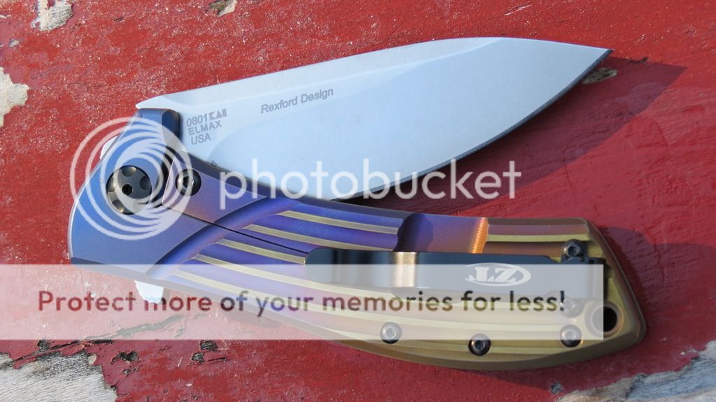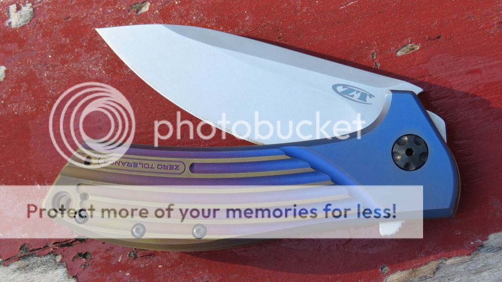 NIB ZT 0801 with "Wyoming Sunrise" anodizing from BladesWeLove. Beautiful. New in original box. First owner, purchased directly from BladesWeLove. Never carried, used, or sharpened. Blade just a hair off center. Good detent, flips like a rocket. In the pics, on the lockside, near the pivot, you see two small drops of water that wiped right off. $OLD