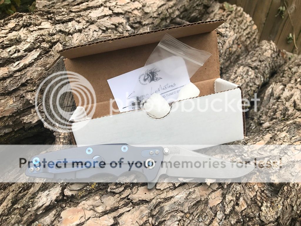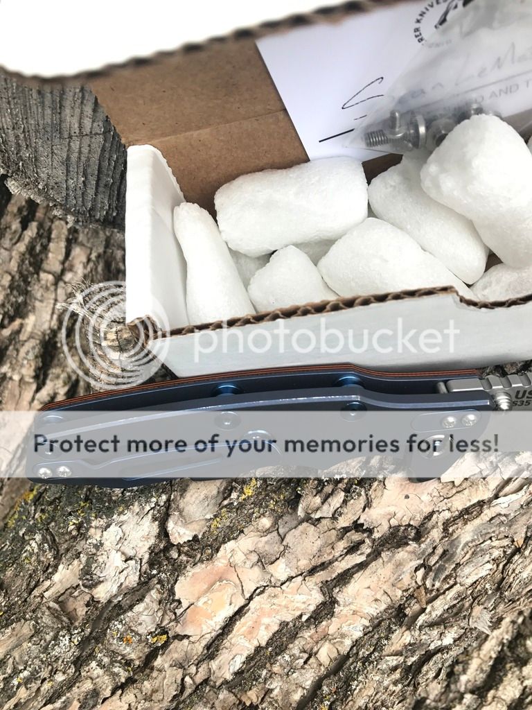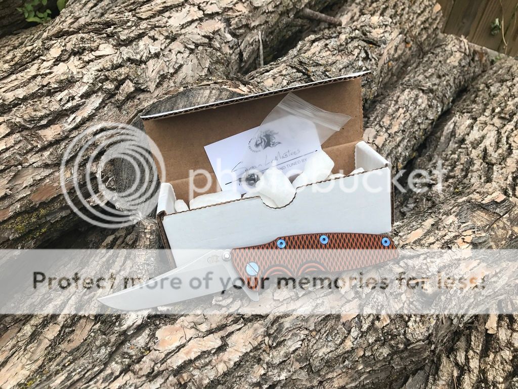 Like new (carried very little used even less) Hinderer Eclipse Gen 2. Factory blue anodized lock side. Includes all blue Ti hardware and back spacers and lock bar stop. All original hardware included. Pumpkin scale. Only marks on it are along the Ti scale edge. (shown in pic) Sharp factory trailing point blade in S35VN.