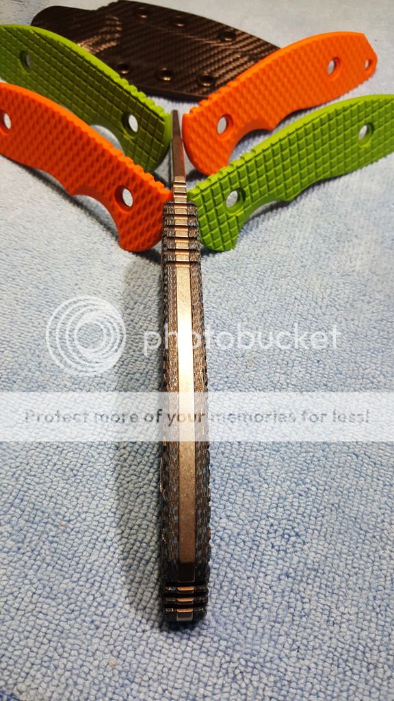 I made two sets of awesome scales for it and a custom cf Kydex sheath (No Tek lok. Just sheath).