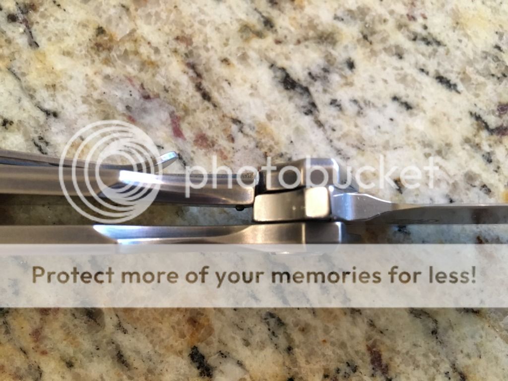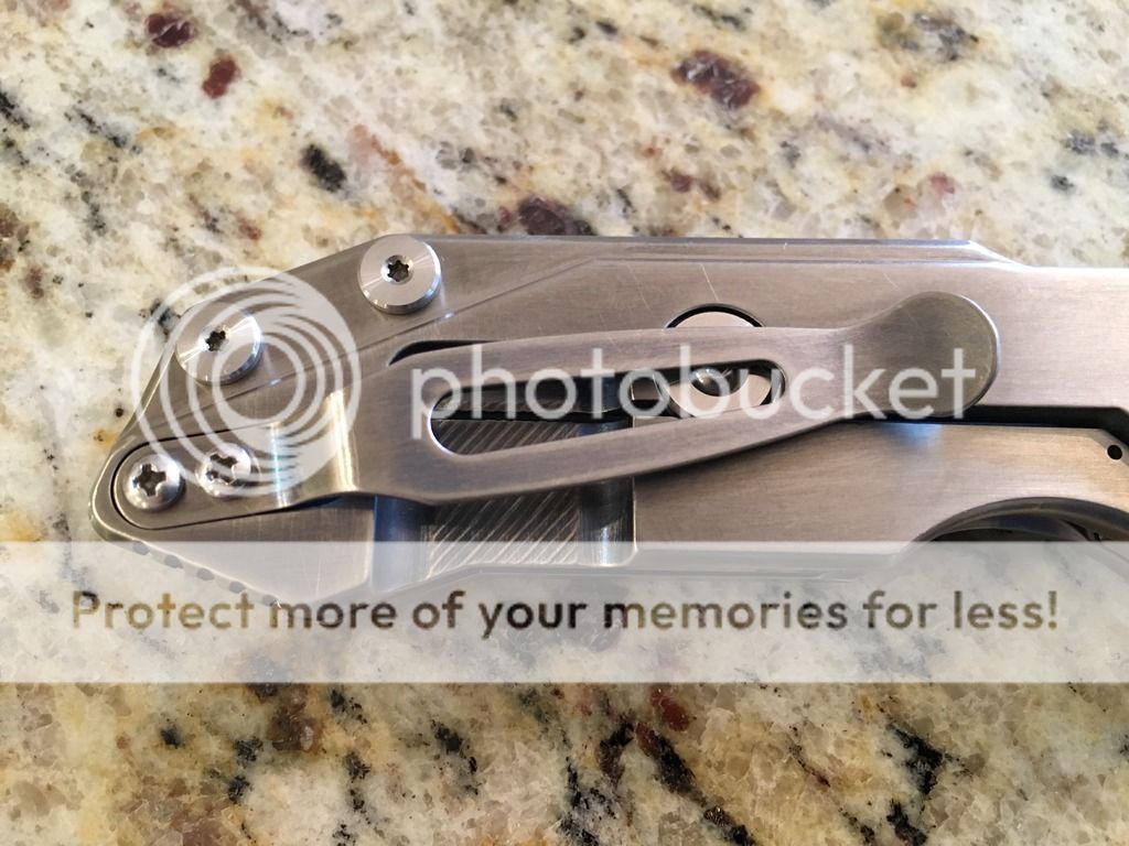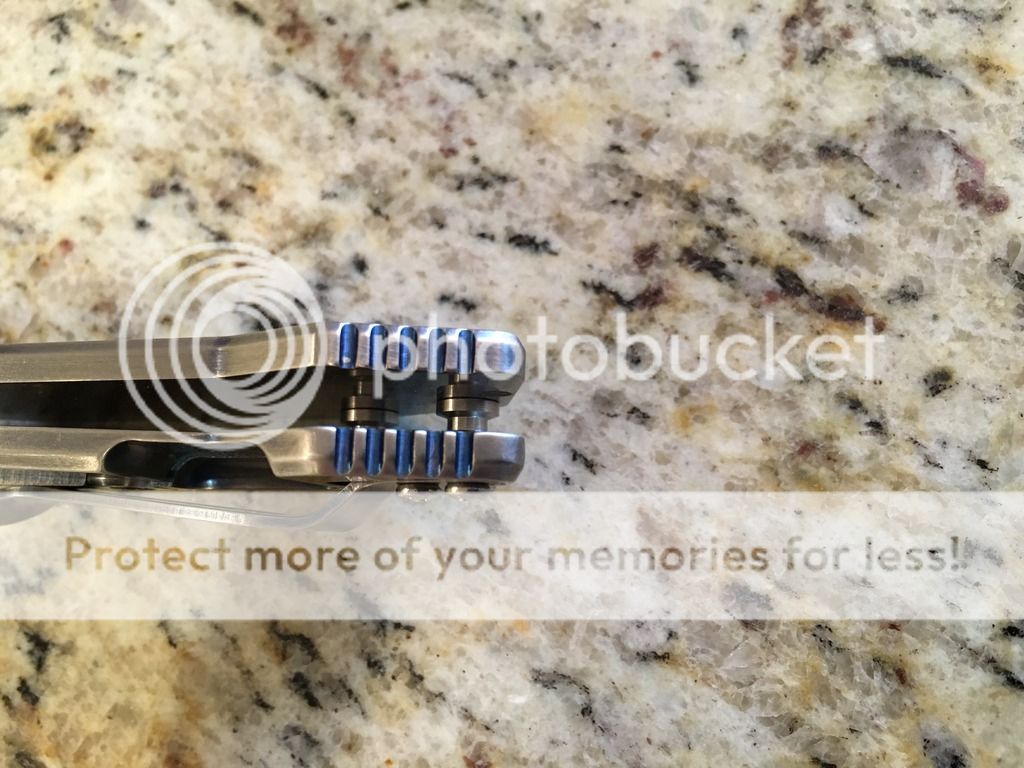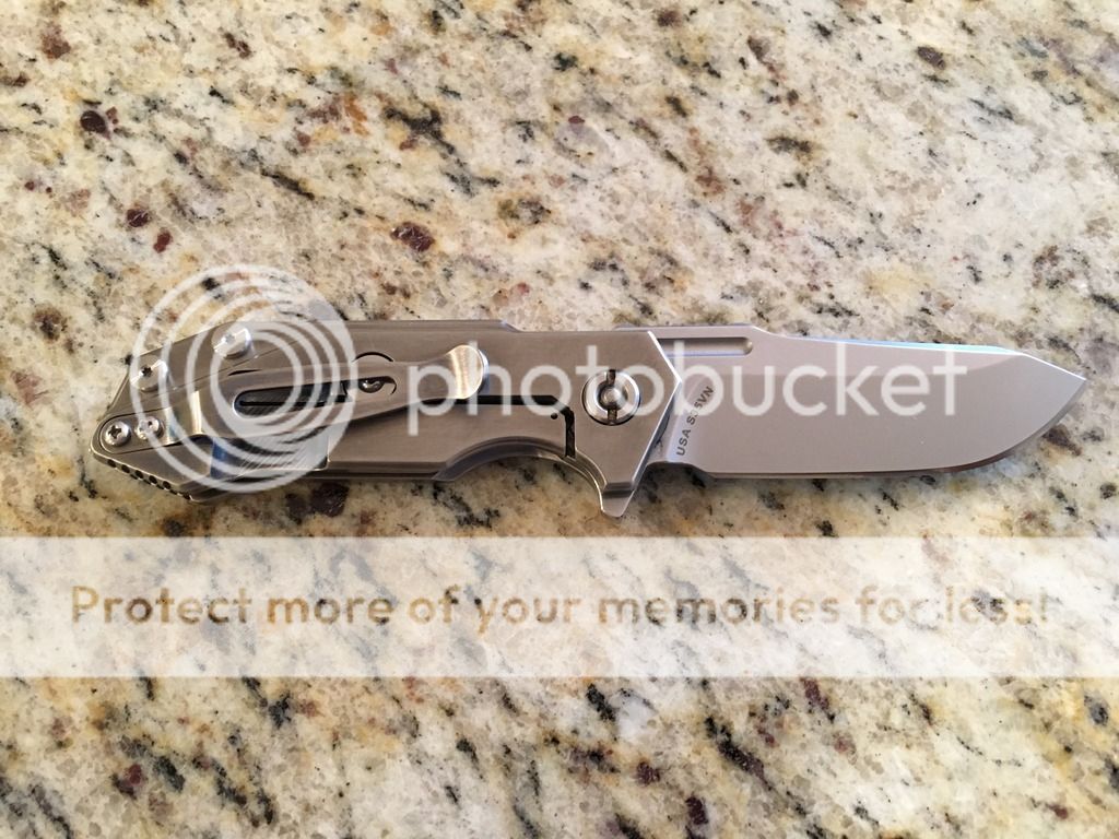 Bought this Half Track new 2 weeks ago, the blade has been sharpened on an Edgepro, it was a blue ano finish, I didn't like the blue so I removed the ano finish with a scotch brite pad, please review pictures, there is traces of blue in the jimping and lockbar cutout. The detent and lockface was not touched. Centering is perfect, lockup is rock solid, excellent flipping action. I picked up a DLC version so I'm highly discounting the price since the finish is not stock. Not looking for trades, thanks. Price is $375 Paypal g&s with priority US50 shipping.