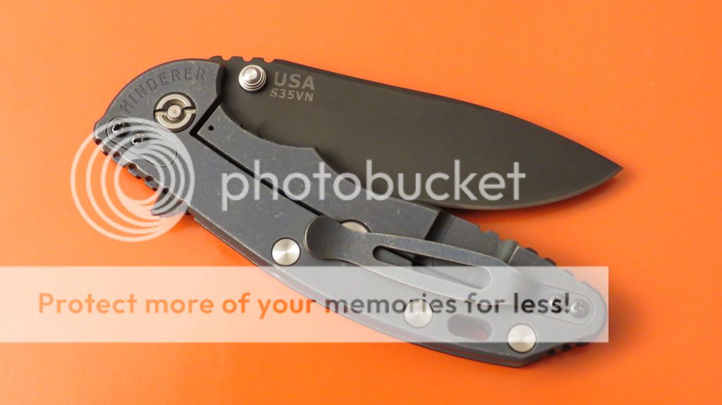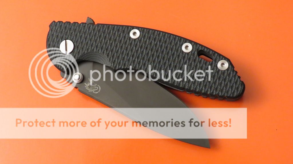 XM-18 3.5" Slicer w/ Black DLC blade, battle blue frame, black/blue G-10 scale. Only a few were made in this configuration. (Unlike newer battle blue that is tumbled and then anodized (I think), this frame was anodized and then tumbled. Looks great with the black DLC blade.) One mark on the lockside looks unoriginal to me with VERY close inspection, but on the battle finish, it blends in. Otherwise, it looks like new to my eye. The detent is average. It flips very smoothly and easily. $OLD