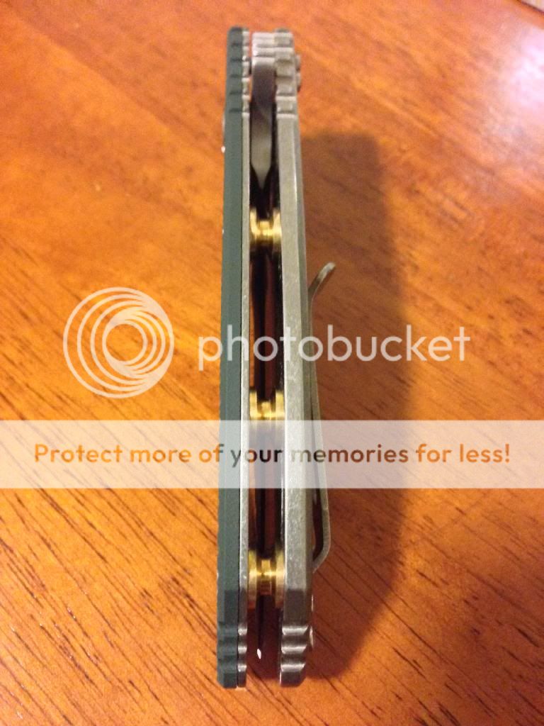Dark green scale, brass standoffs, and I will include a Ti pivot screw in addition to factory screw in the sale
