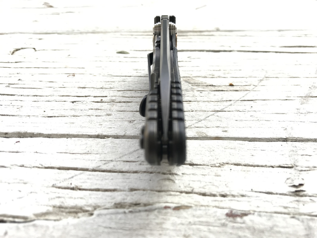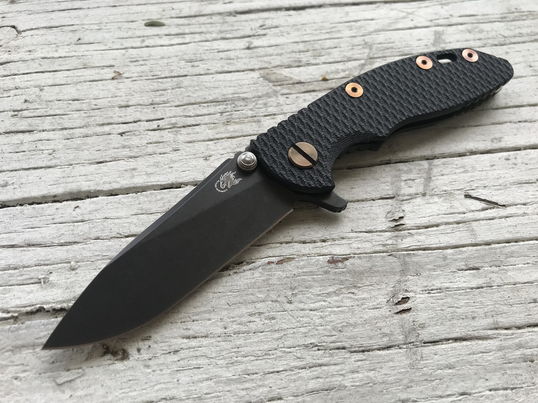 DLT Exclusive Hinderer Tri-Way No Choil 3in. Slicer in Stonewash DLC. Has been used and carried. Still has factory edge. I personally can’t find anything wrong with it. Currently has bearings installed as well as bronze Ti hardware. Lockup is solid at around 40%. Centering looks to be spot on. Includes Box, card, Washers, and peanuts. No original hardware included. Please feel free to contact me with any picture requests or questions you may have.