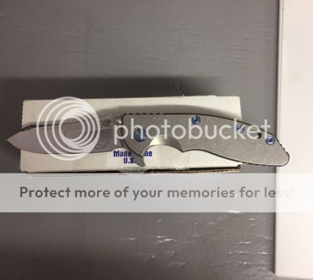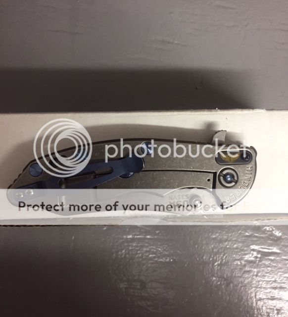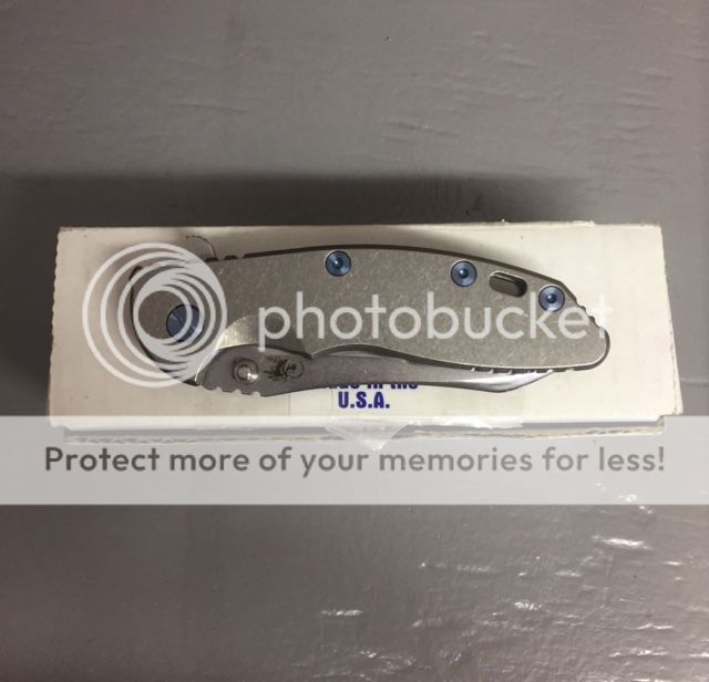 LNIB XM-18 3.5" FULL titanium[\B], Awesome regrind, Custom ALL blue anodized hardware (clip, screws, pivot etc.). Steel Flame winged crusader filler tab, extremely smooth. Sharp as they come. $585 free shipping