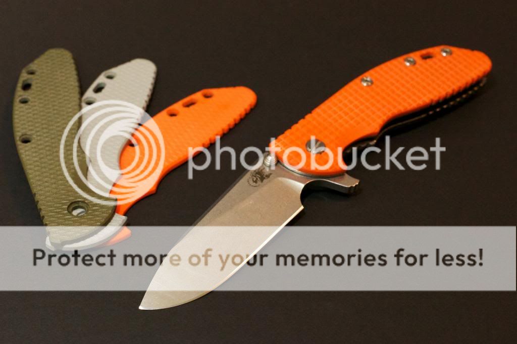 I've got a sweet XM-24 Slicer that's not getting enough pocket time. Bought it new from another forum member and carried for about a month and broke it in. Flips open very nicely and locks up with a nice solid CHUNK sound — nothing quite like it. Sharpened once on my Wicked Edge and it will pop hairs off your arm right now. When I took photos I noticed a couple of very light scratches near the tip on the G10 side. Pretty tough to see with the nice stonewash but they are there nonetheless.