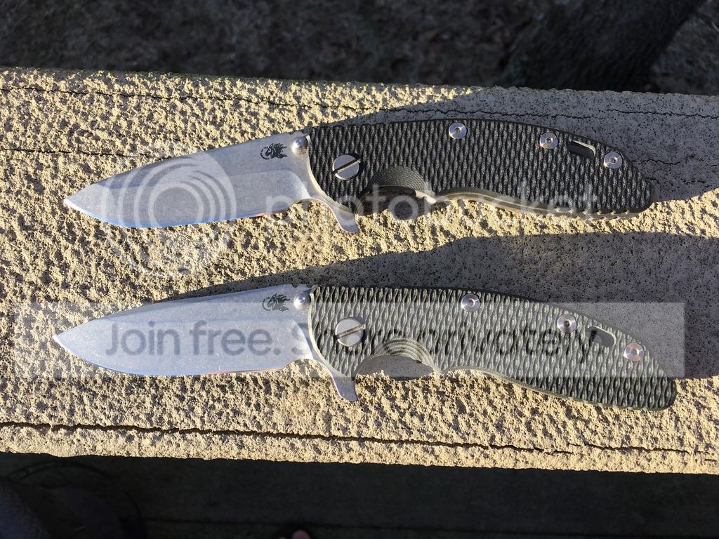 Downsizing my collection, here's 2 never carried or used 3.5 XM-18's, I polished the factory edges on an Edge Pro Apex and they've been in the boxes ever since. Spanto has Black G-10 with stonewashed frame and blade, Spearpoint is Sold. Good lock up, centering, and medium detents on both. Both come with boxes, baggies, and peanuts. PM or email with any questions. Looking for $old Paypal each, includes fees and priority US50 shipping. Not looking for any trades. Thanks for looking. In the event of separate PM and thread post "I'll take it", timestamp applies.