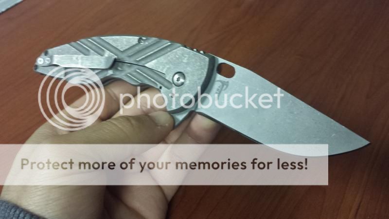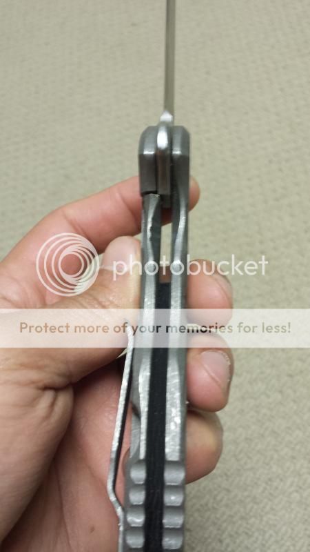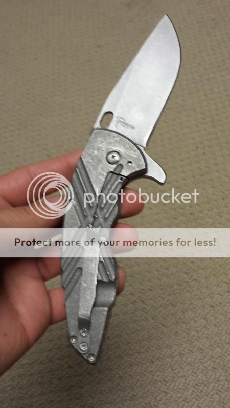 -Blasted and Stonewashed Ti handles and CPM154 blade. Jake's original hand ground and sharpened edge. I have only stropped the knife on leather.