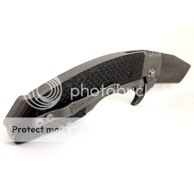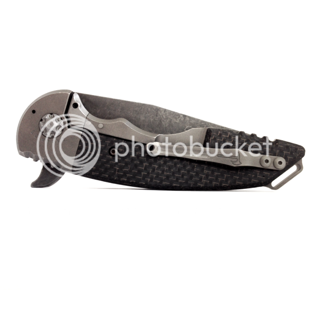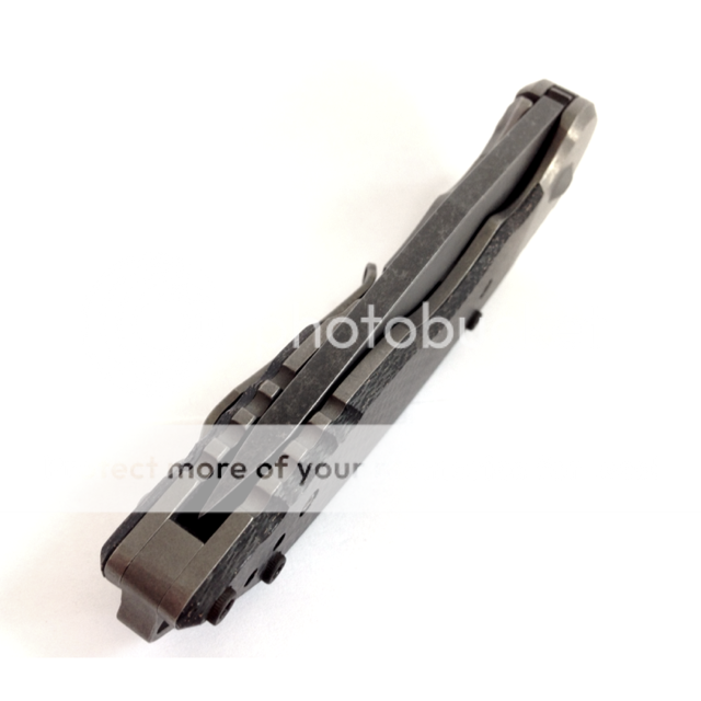 Sold sold sold sold sold sold Hoback A15 flipper with LSCF scales and tumbled ti bolsters. The blade is dark acid stonewashed and is razor sharp. The knife is in new condition and the flipping action is so smooth and fast. This knife is incredibly light for its size and carries very nicely in the pocket. The blade is centered and the lock up is early with no play in any direction.