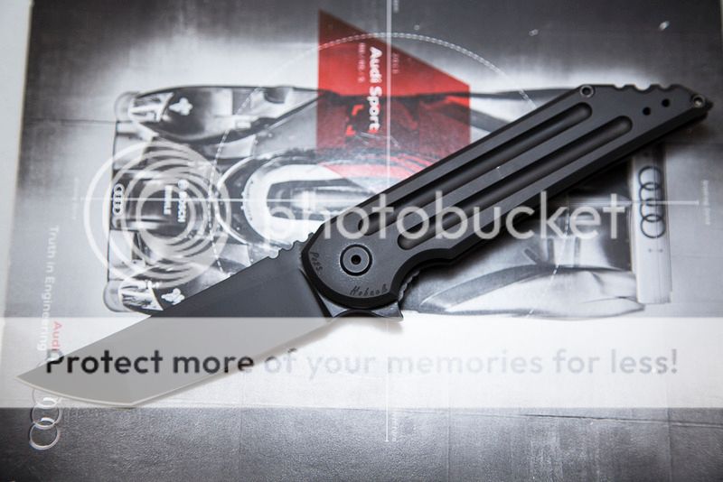1.Hoback Kwaiback All Black DLC. This knife is brand new, unused. There is a small tiny mark on the handle as you can see in the picture. Comes with original Hoback wooden box. Priced to sell at $499 net to me shipped in the USA.