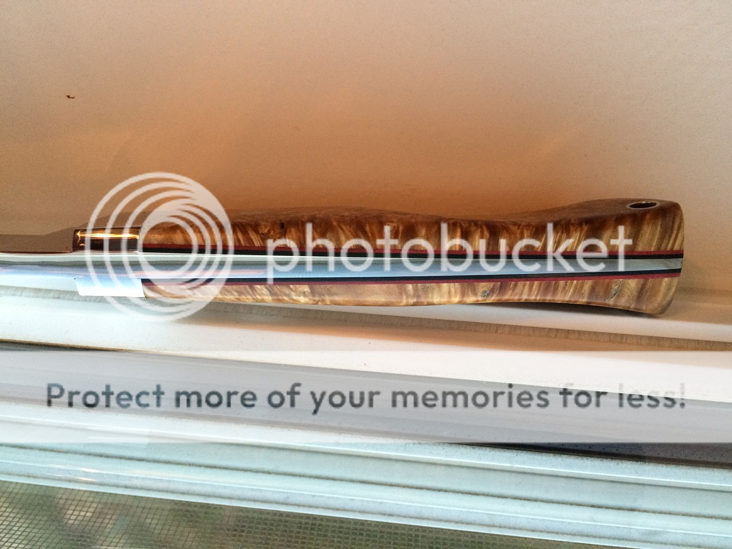 Handle: Stabilized Black Ash Burl with two tone liners (black and bed)