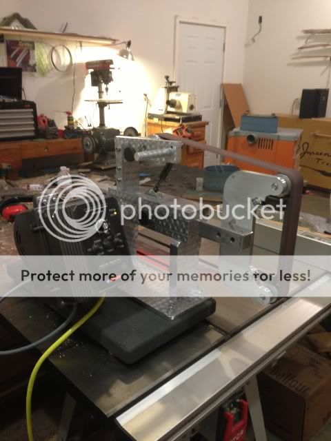 1 1/2hp 3phase motor from ebay , TECO FM50 VFD (a cheap VFD thats not sealed from dust ),tracking wheel, drive wheel, and platen from Beaumont. Total cost was 580.00 At first I only had the platen so I just bolted it to the steel plate.