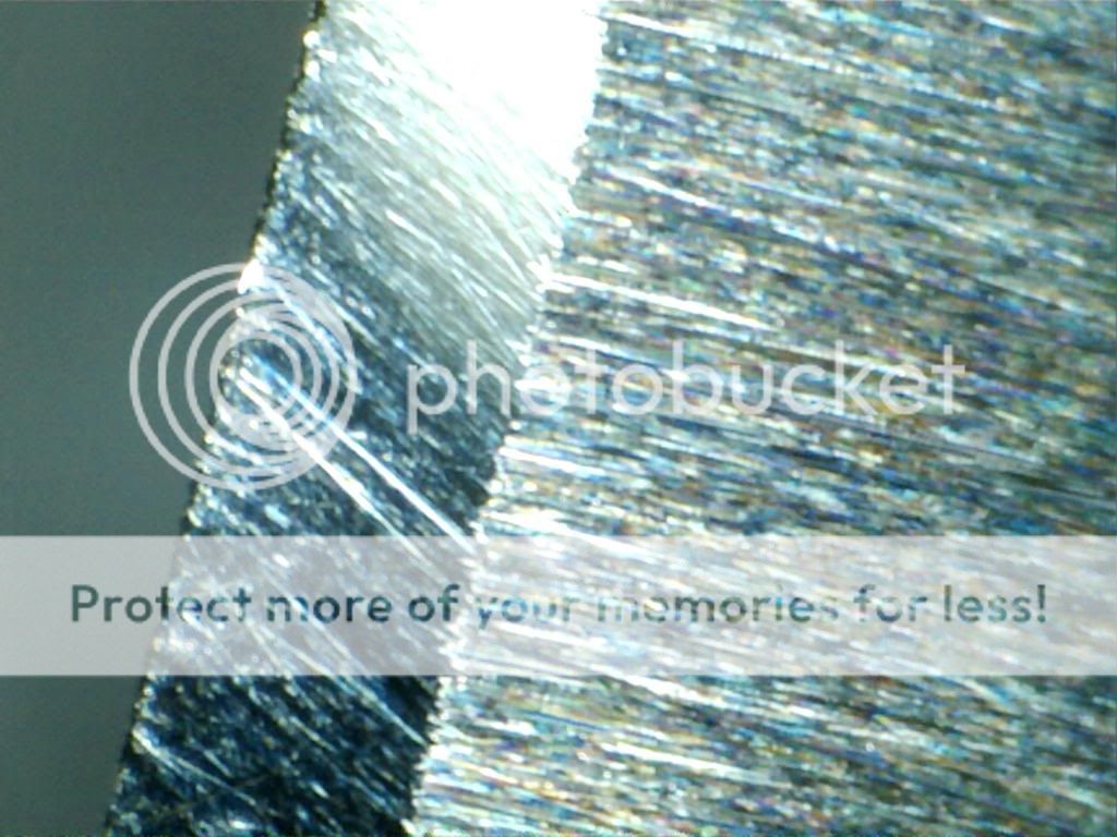 Not particulairly impressive , large random scratches , looks more like a saw than a straight razor , they stropped it with a poor strop because there was some convexity at the edge of the edge.
