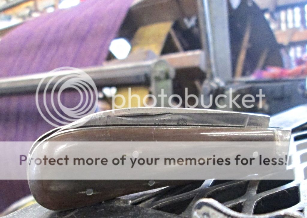 Found this at a car boot sale recently. Made by Harrison & Fisher and Co of Sheffield, I think I'd describe it as a two blade equal end (bolsterless) penknife, but I may well have this wrong. The smaller blade had been used and sharpened a great deal in the past, so much so that the point was sticking up way above the top of the main blade when closed. Now I like my knives to be fully useable, even the old ones, and no amount of filing away at the heel of the tang was gonna bring the point of this one down to where it no longer posed a threat in the pocket. So I bit the bullet and turned the pen blade into a useful little sheeps foot and made it something I can now carry and use with confidence.