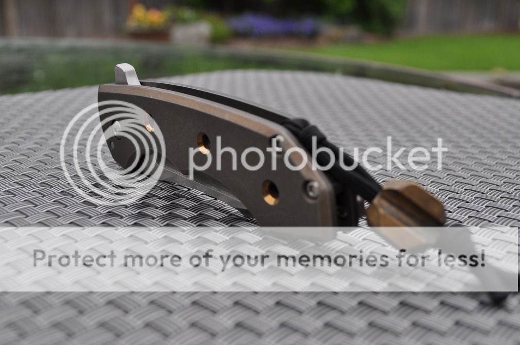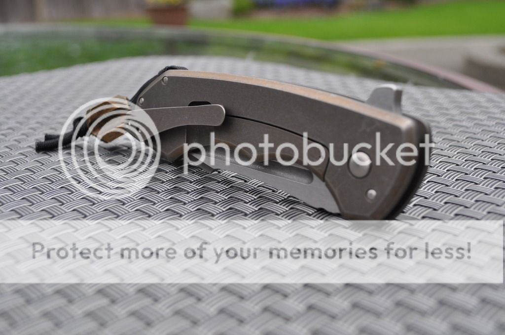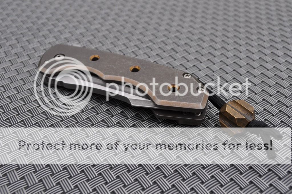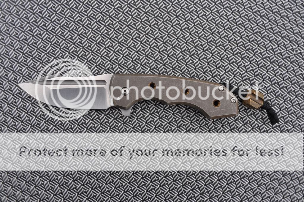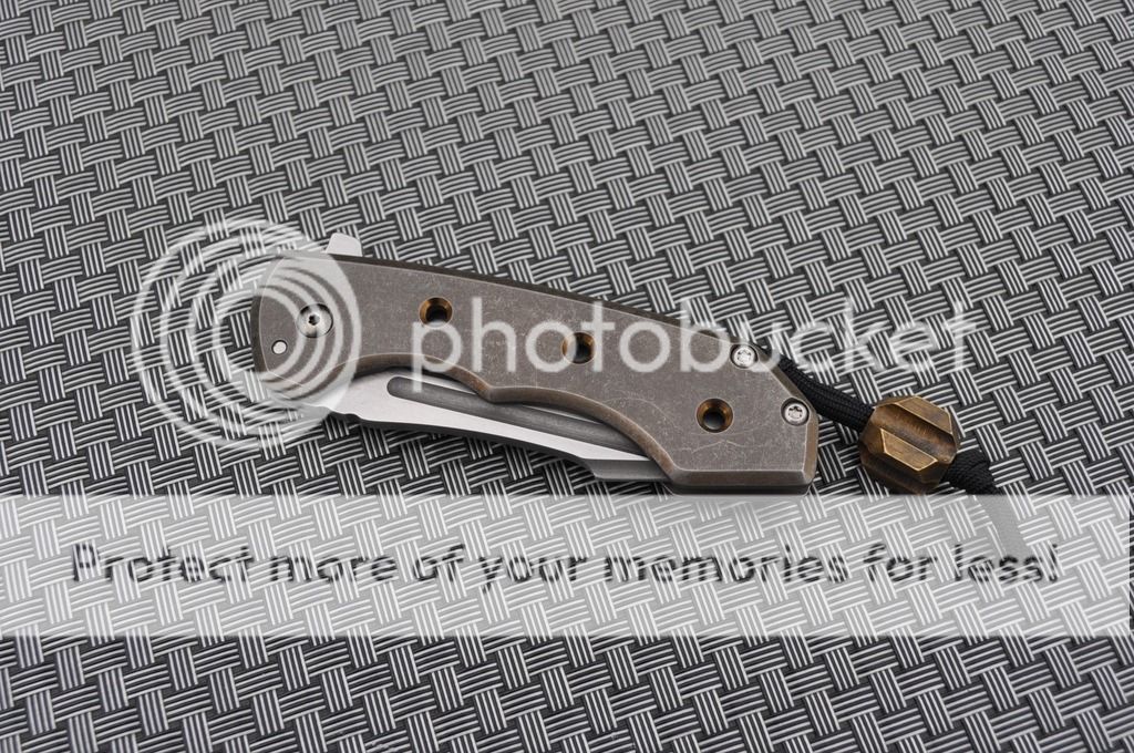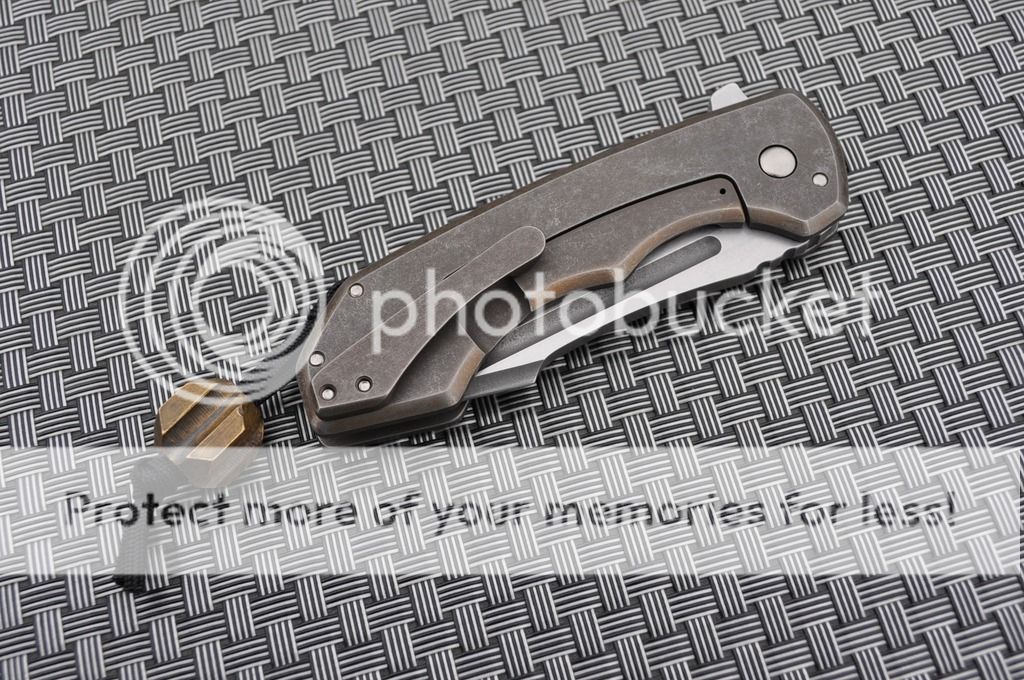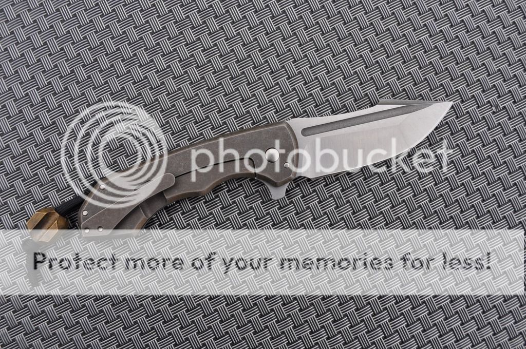 JB Stout/Blount Overload V2, All titanium with a bronze finish, 3.6" harpoon blade on bearings, comes with a bronze Blount bead. Knife is new/ uncarried and flips great! $2900, SOLD.