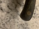On all of the models back then (Battle Mistress, Steel Heart, Badger Attack & Mean Street), the handles with bolts came before the handles with tubes. My understanding is the 1/300 SHBMs were the first ones made (and therefore would have all had bolts), so a 1/300 with tubes would be unusual and possibly from:... Were the slotted bolts older than the clip point 1/300 SHBMs with just the tubes?