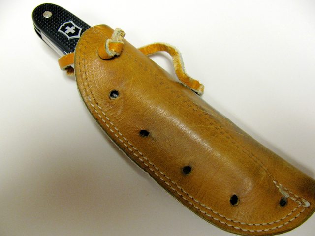 As for everyone who told me to just make my own, I made a couple of attempts tonight! They are pretty much a joke compared to what I've seen posted in this thread but, I'm actually pretty happy with their functionality. I just did a very rough copy of the KSF Mainstreet design where you just pinch the sides to release the friction between the slip and knife. My lines aren't straight and my stitch work is horrible at best but, here are my two attempts: