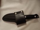 I couldn't get a grip on the eyelets with any pliers I had so I carefully filed off the head of the eyelet and punched it through. Since i didn't have any eyelets or a setter I used what I had, leather and Chicago screws. Not as adaptable as the paracord method but at least it will let me use the sheath for horizontal carry on the belt that I use. May try something different later.