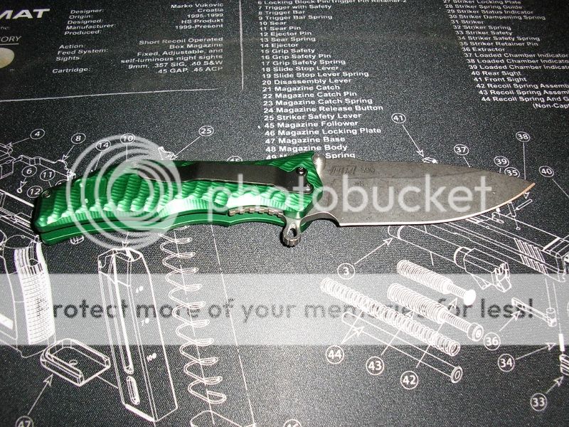 Manual maxx glide is now among the smoothest knives I own. No work in period needed. No blade play either, centered, and early lockup. I was worried about the green handles but not to worry as they look great. The blade tip when closed is close to the beginning of the scale. My finger has to be pressed moderately hard to barely feel the tip though.