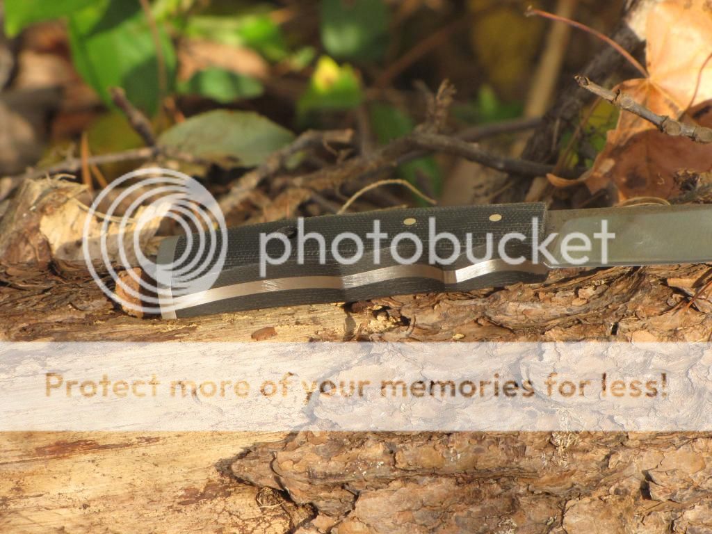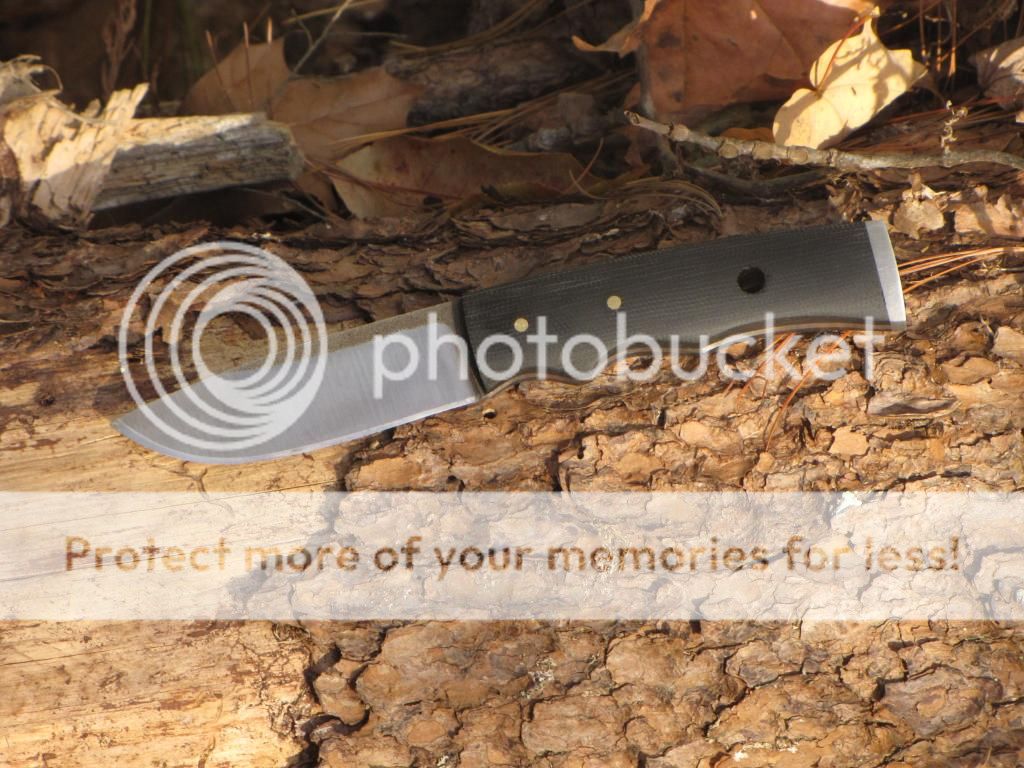 Here's a hunter/bushcraft knife with stainless steel pommel. Its from 1/8" O1 tool steel. The blade is 3 3/8". Handle is 3 7/8" with black canvas micarta. Comes with leather sheath. I haven't put my maker's mark on it yet, daylight was fading fast and I wanted to get the pics.