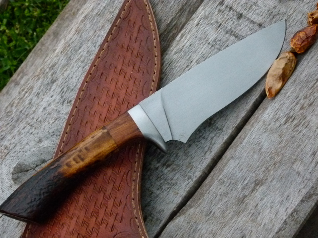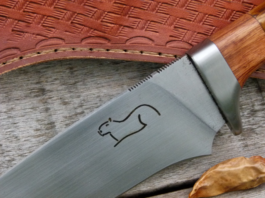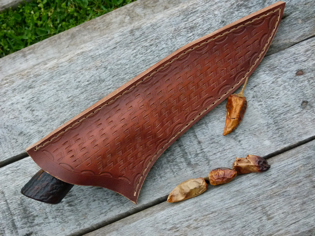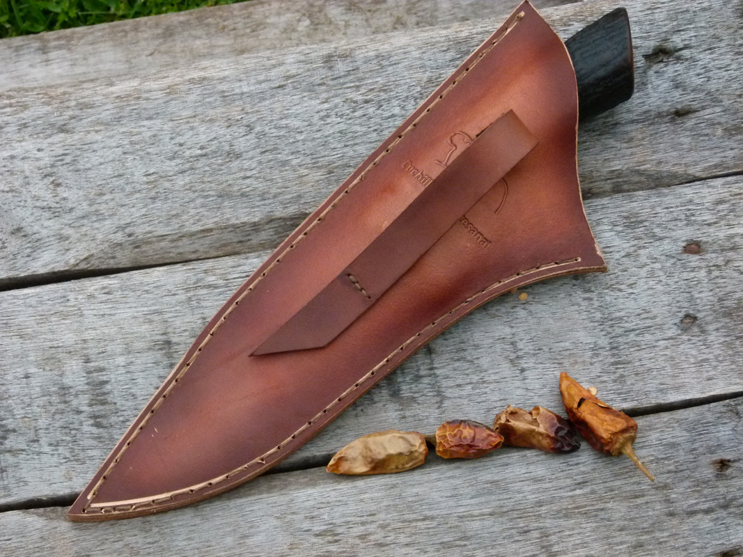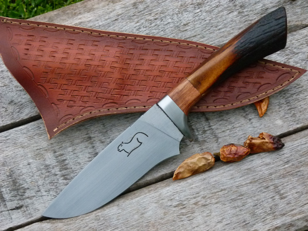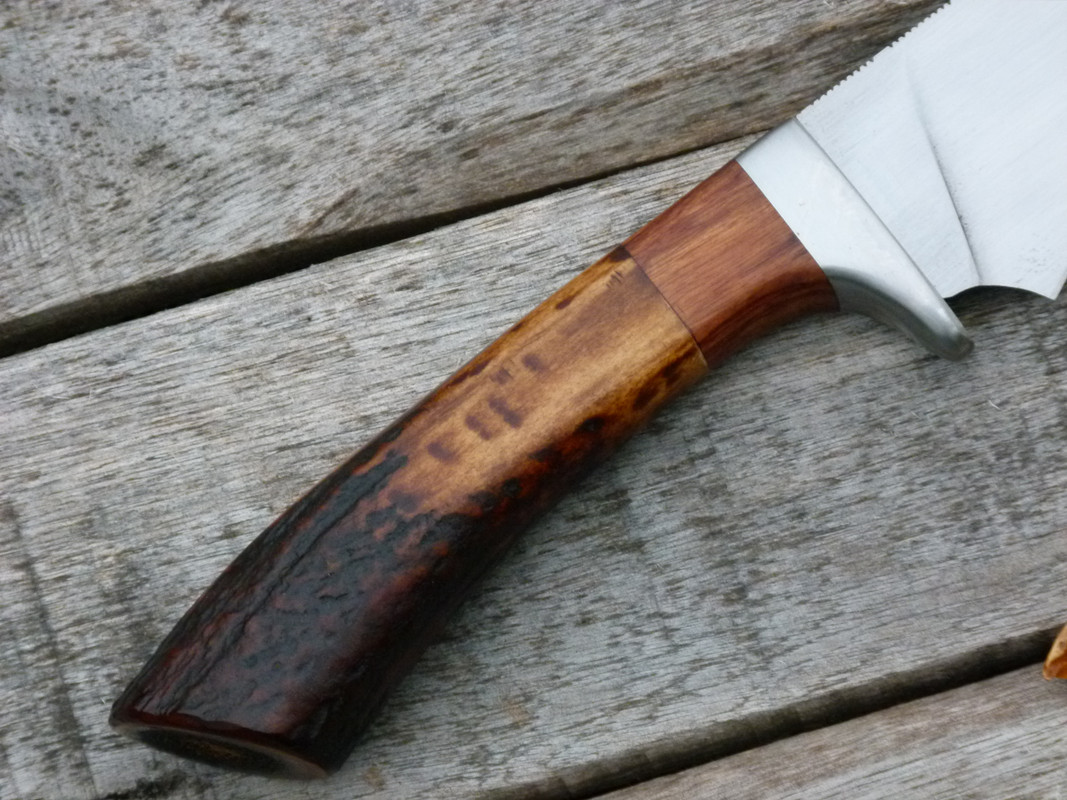 It is encased in urunday wood and red deer antler, the guard is made of 420 stainless steel.
